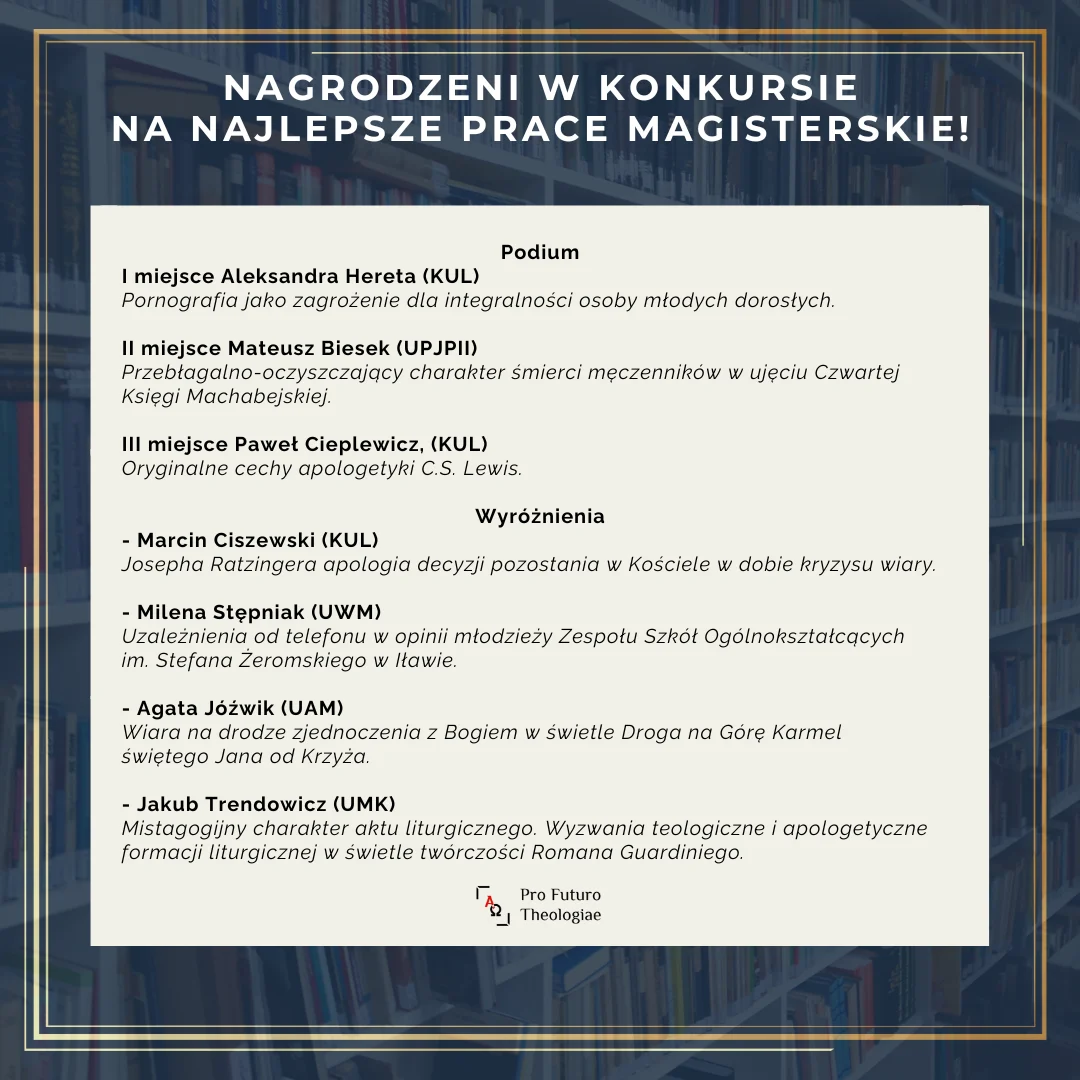🎉🏆 Znamy laureatów IX edycji Konkursu na najlepszą pracę magisterską z teologii i nauk o rodzinie! 🏆🎉